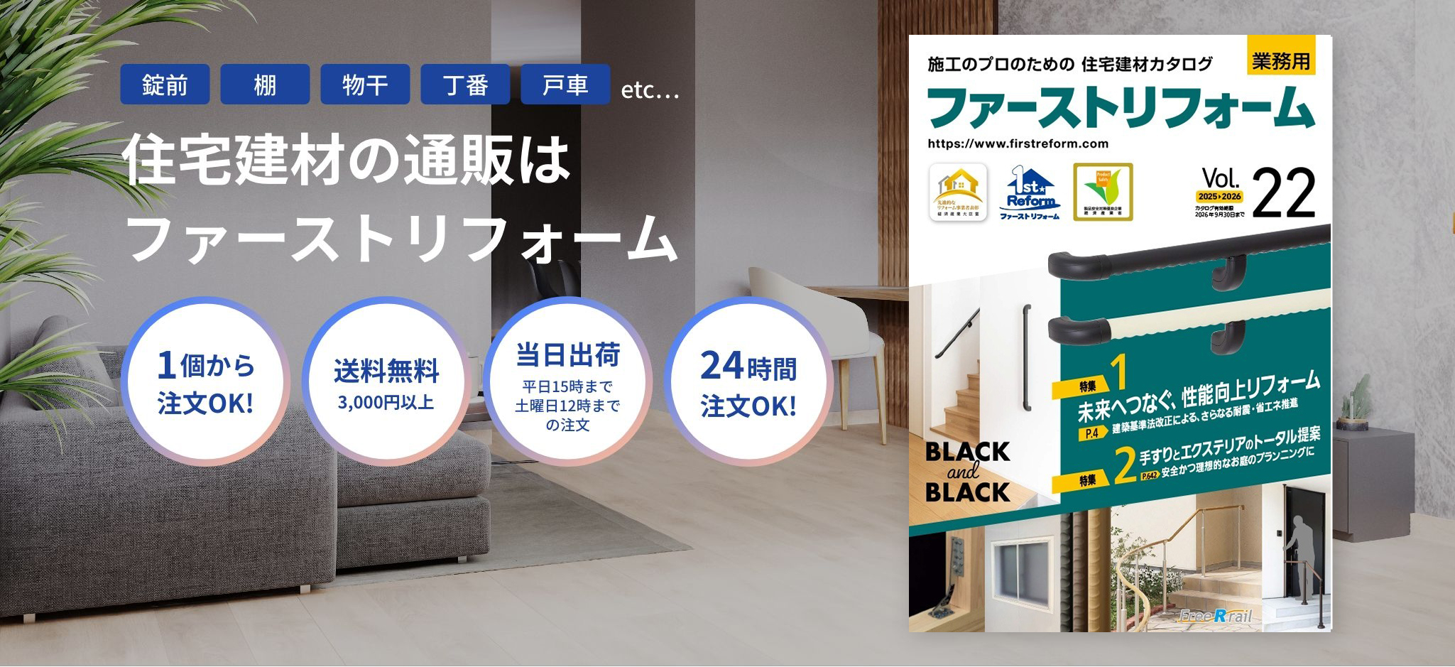 ファーストリフォームは施工業者向けの住宅建材カタログ・インターネット通販会社です。